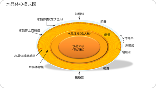 海外の文献(1998年)によると、「発生率は術後1年で11.8%(9.3-14.3%)、術後3年で20.7%(16.6-24.9%)、術後5年で28.4%(18.4-38.4%)」ということです(科学的根拠(evidence)に基づく白内障診療ガイドラインの策定に関する研究)。 私は、2023年3月15日に左目の後発白内障手術を受け、2024年10月17日に右目の後発白内障手術を受けました。いずれも手術の3か月ほど前から見にくくなっていました。2021年3月に白内障の手術を受けましたから、2年足らずで左目の後発白内障が発症し、3年余りで右目の後発白内障が発症したことになります。 白内障手術と、左目の後発白内障手術と、右目の後発白内障手術を受けた医院はすべて異なります。 原因は上皮細胞の増殖 後発白内障は水晶体上皮細胞が再増殖することで起こる後囊混濁で、発生のメカニズムは次のようになっています(眼科診療クオリファイ)。 ![]() これらのイラストは、手術後の水晶体部分の水平断面図で、上が眼の前方となっています。水色は水晶体囊(すいしょうたいのう=水晶体を包む薄い袋)です。手術では水晶体囊の前方部分を丸く切り取り、水晶体の中身を砕いて吸い出し、眼内レンズ(薄茶色)を挿入します。術後6ヶ月以内に前囊収縮が発生し、1年過ぎたころから後発白内障が発生し始めます。 前囊収縮は「ほとんど視機能に影響しない」 術後しばらくすると、水晶体上皮細胞が線維性の細胞に変化し、次の写真(日本白内障学会>前嚢収縮・後発白内障)のように、水晶体囊の欠損部分を修復し始めます。これが、前囊収縮です。「前嚢収縮は術後6ケ月以内が最も進行しやすいといわれていますが、ほとんど視機能に影響しません」が、線維性の細胞は混濁しているので、前囊収縮が進みすぎると視力に影響が出るようになります。 ![]() その場合は、次のように(教育セミナー:前嚢収縮および後発白内障への対処法 獨協医大 永田万由美)、YAGレーザーで広がりすぎた前囊収縮部分に切れ目を入れると、切開部分が再び広がり、視力が回復します。 ![]() 水晶体囊は硬化し、次第に収縮 水晶体囊と水晶体および眼内レンズの関係は次のようになっています。 まず、手術前の水晶体の構造は次のようになっています(新しい眼内レンズの開発 SML | 株式会社MIRAI EYE(ミライアイ)、このページのリンクは切れています)。イラストは水平断面図で、水色の部分は角膜です。 ![]() 一方、手術後は次のようになります。水晶体に比べ、眼内レンズは、かなり平べったいので、水晶体囊も平らに押しつぶされた形になります。前囊部分が大きく切り取られているので、水晶体囊は張りを失い、左右に引き伸ばされます。張りを失った水晶体囊は硬化し、次第に収縮することになります。 ![]() 水晶体は生涯成長し続ける 水晶体の構造をより詳しくみると次のようになります(日本白内障学会>水晶体の構造と再生)。イラストは水平断面図で上が前方です。水晶体上皮細胞は、水晶体の前面を覆っている薄い膜で、水晶体囊の内側に密着しています。赤道部付近前方の上皮細胞は増殖帯となっていています。増殖帯で分裂し増殖した上皮細胞は細長い繊維細胞に変化します。 ![]() 繊維細胞の細胞小器官は、PLAATファミリー酵素の働きにより分解され、繊維細胞はたんぱく質と水で満たされた透明な組織となります(なぜ眼の水晶体は透明になるのか?、東大がその仕組みを解明)。透明になった繊維細胞は積み重なって、水晶体の外辺部の層を形作ります。かくして、水晶体は生涯成長し続けることになります。 白内障手術では、水晶体囊の前囊を大きく切り取りますが、このとき上皮細胞も同時に切除され、砕かれた水晶体とともに吸い出されます。しかし、上皮細胞の増殖帯部分は、切り取られず残った水晶体囊に密着しているので、そのまま残存します。 そして、術後1年ほどして、破壊された水晶体組織を再建するために、増殖帯から細胞分裂が始まります。増殖した上皮細胞は、本来ならば透明な水晶体繊維に変化するはずですが、不透明なまま眼内レンズの裏側に移動し集積します。これが、後発白内障発生のメカニズムです。 それならば、増殖帯を含めて切除するように水晶体囊の前半分をもっと大きく切り取れば良さそうですが、そうすると、眼内レンズを安定して固定することが困難となるので、増殖帯部分の上皮細胞を残さざるを得ないのかもしれません。 囊屈曲形成で抑制の可能性 したがって、増殖帯からの分裂増殖が遺伝子情報に組み込まれているとするなら、後発白内障の発生は不可避ともいえそうですが、次のように囊屈曲が形成されれば、抑制の可能性はあるようです(専門医のための眼科診療クオリファイ )。 ![]() 術後しばらくすると、水晶体囊(水色部分)は収縮し始めますが、眼内レンズ(IOL)の端が鋭角になっていると、収縮した水晶体囊は眼内レンズと直角にぴったり密着します。これが囊屈曲です。囊屈曲が形成されると、増殖した上皮細胞(LEC)は、眼内レンズの裏側に進展(進入)しにくくな